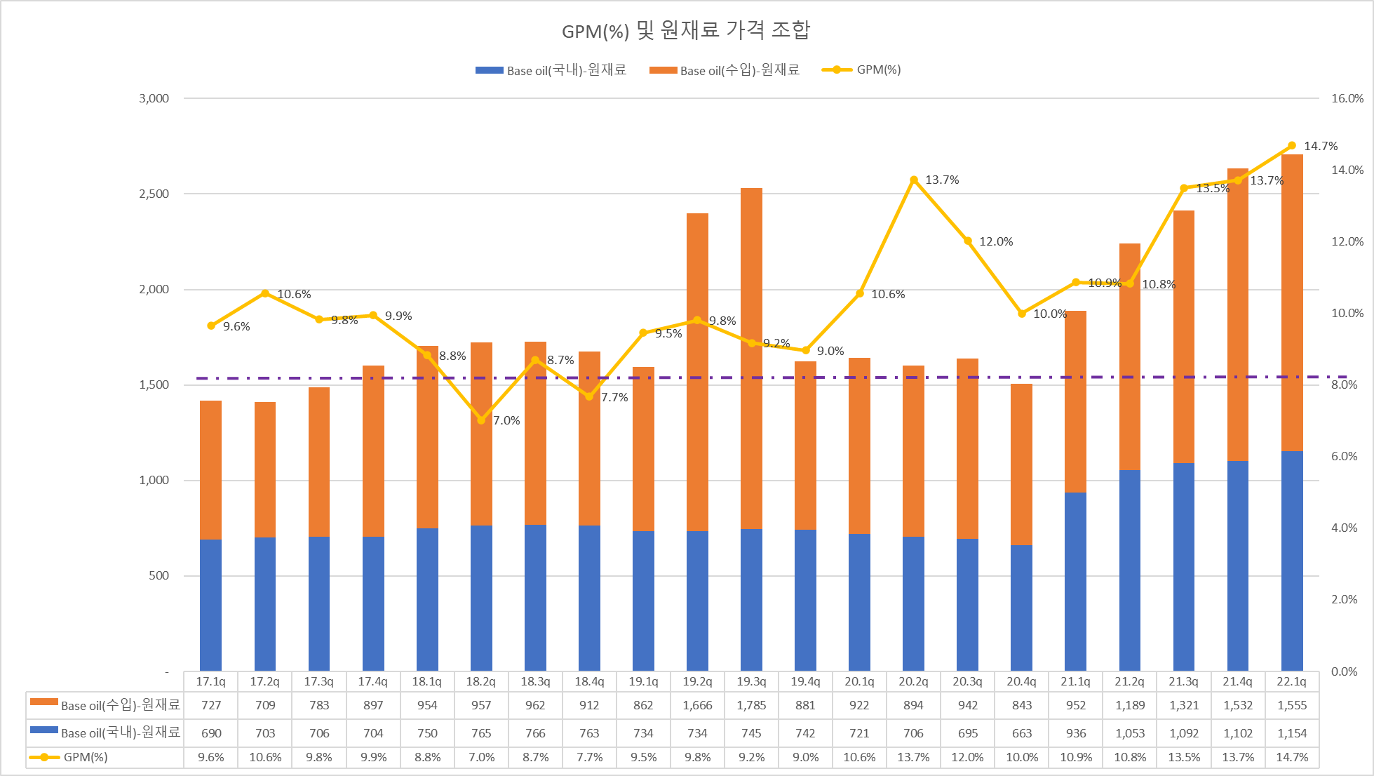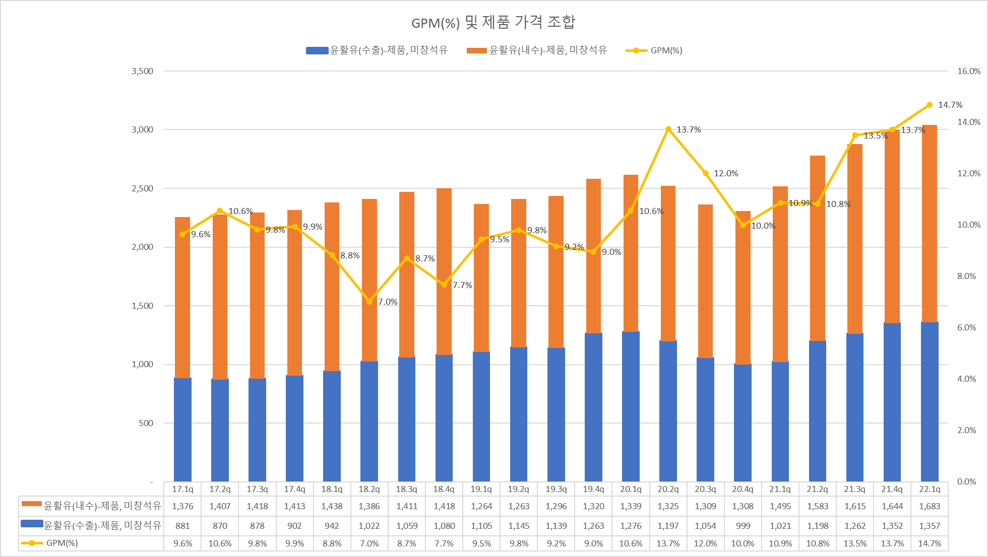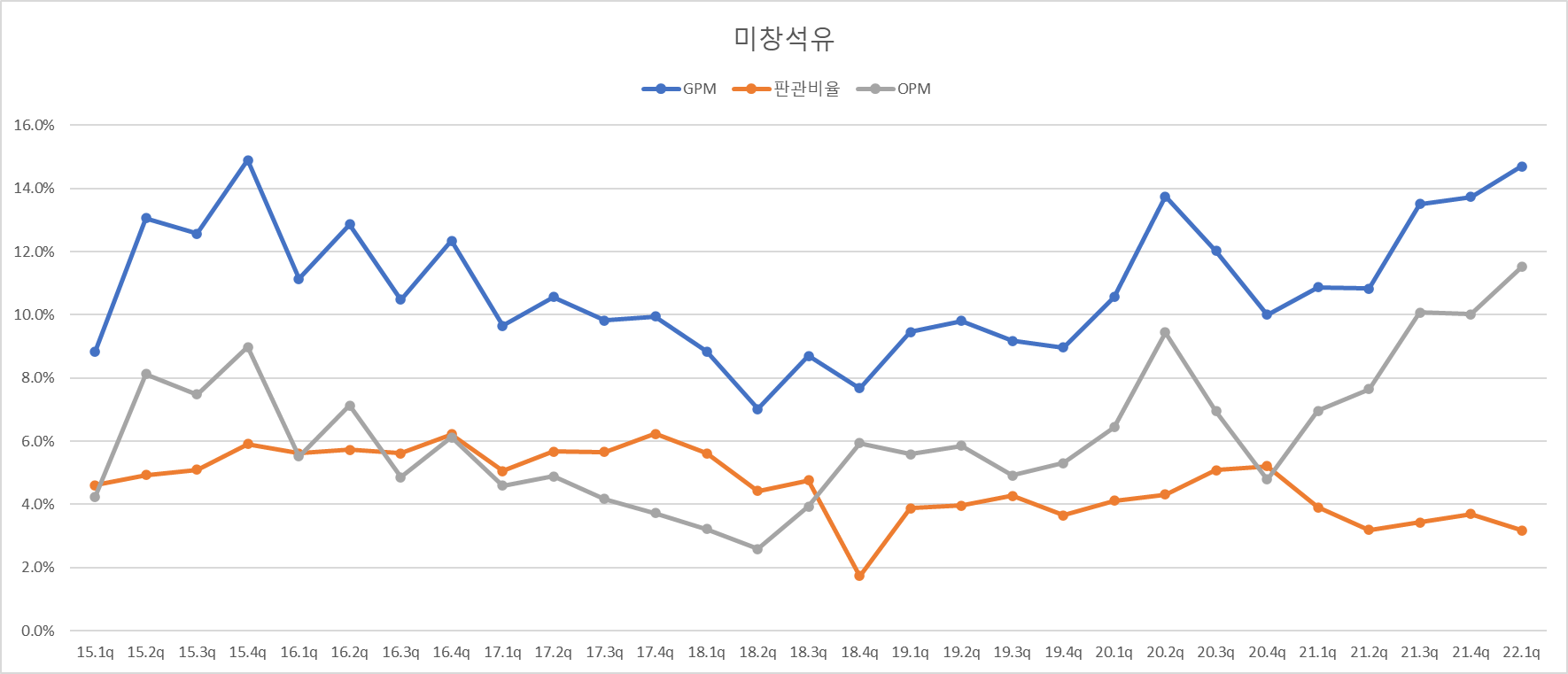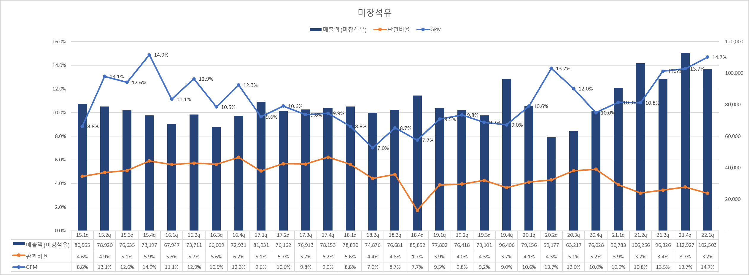 미창석유는 22.1Q 역대 최고 GPM 기록(15.4Q 제외). 왜 그러한지 사유를 알아보도록 합니다.