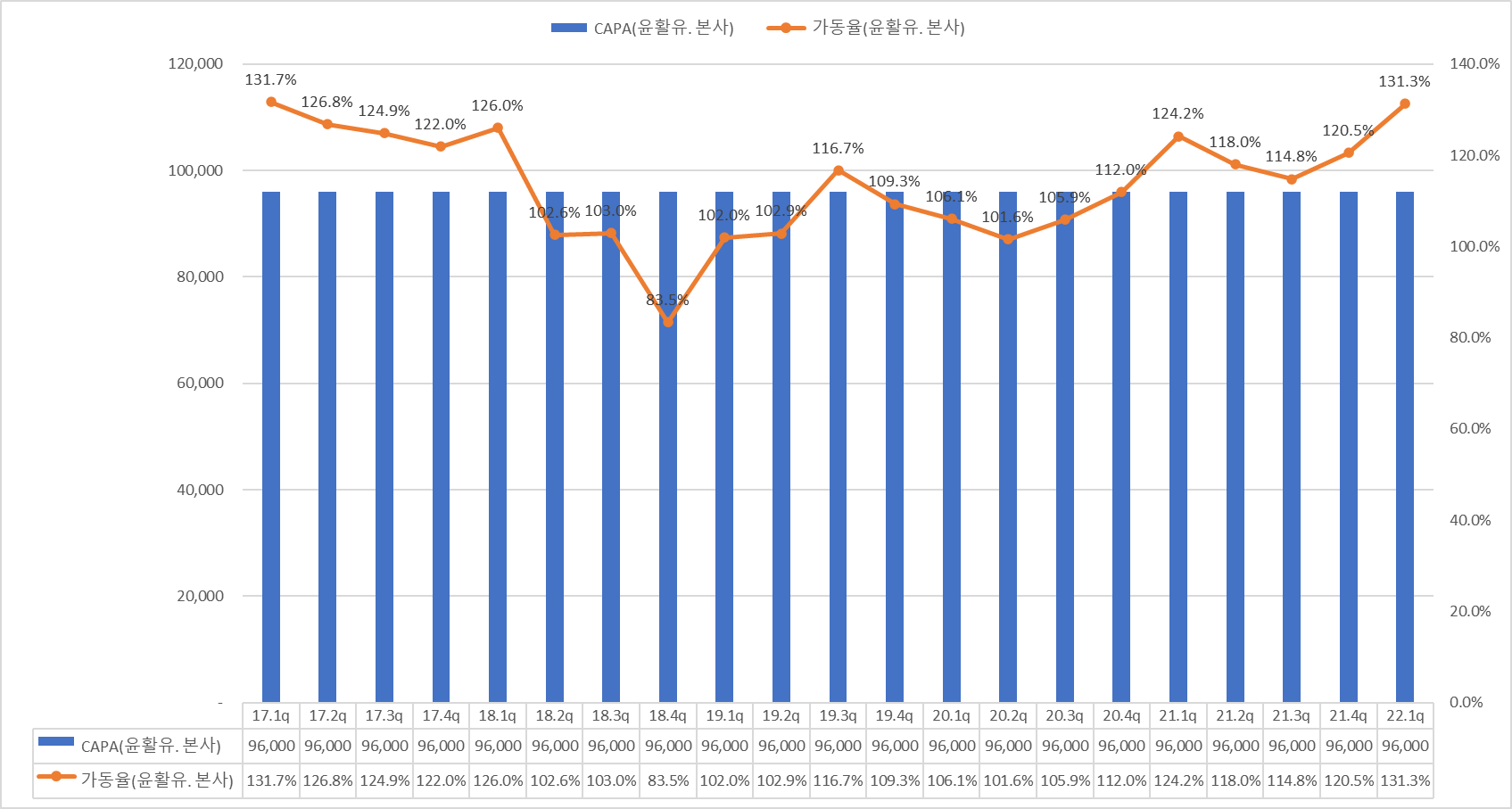 아래와 같이 가동률은 거의 full로 돌리고 있는 상황.