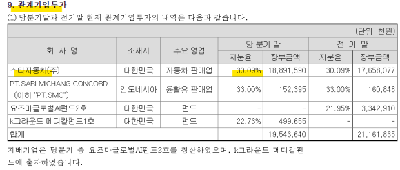 미창석유는 지분 30.99%를 보유한 스타자동차를 관계사로 두고 있음.