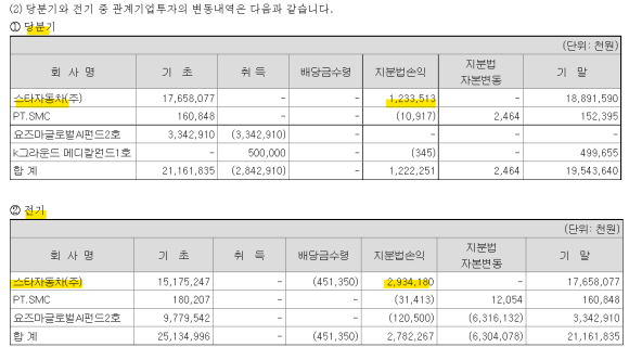 그리고 덤으로 관계사 스타자동차로부터의 지분법 손익은 지속 증가.