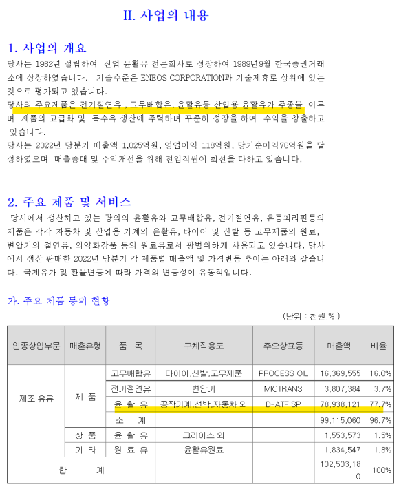 미창석유 ir과 통화한 결과 미창석유 윤활유의 주요 용도는 해운업(선박용)