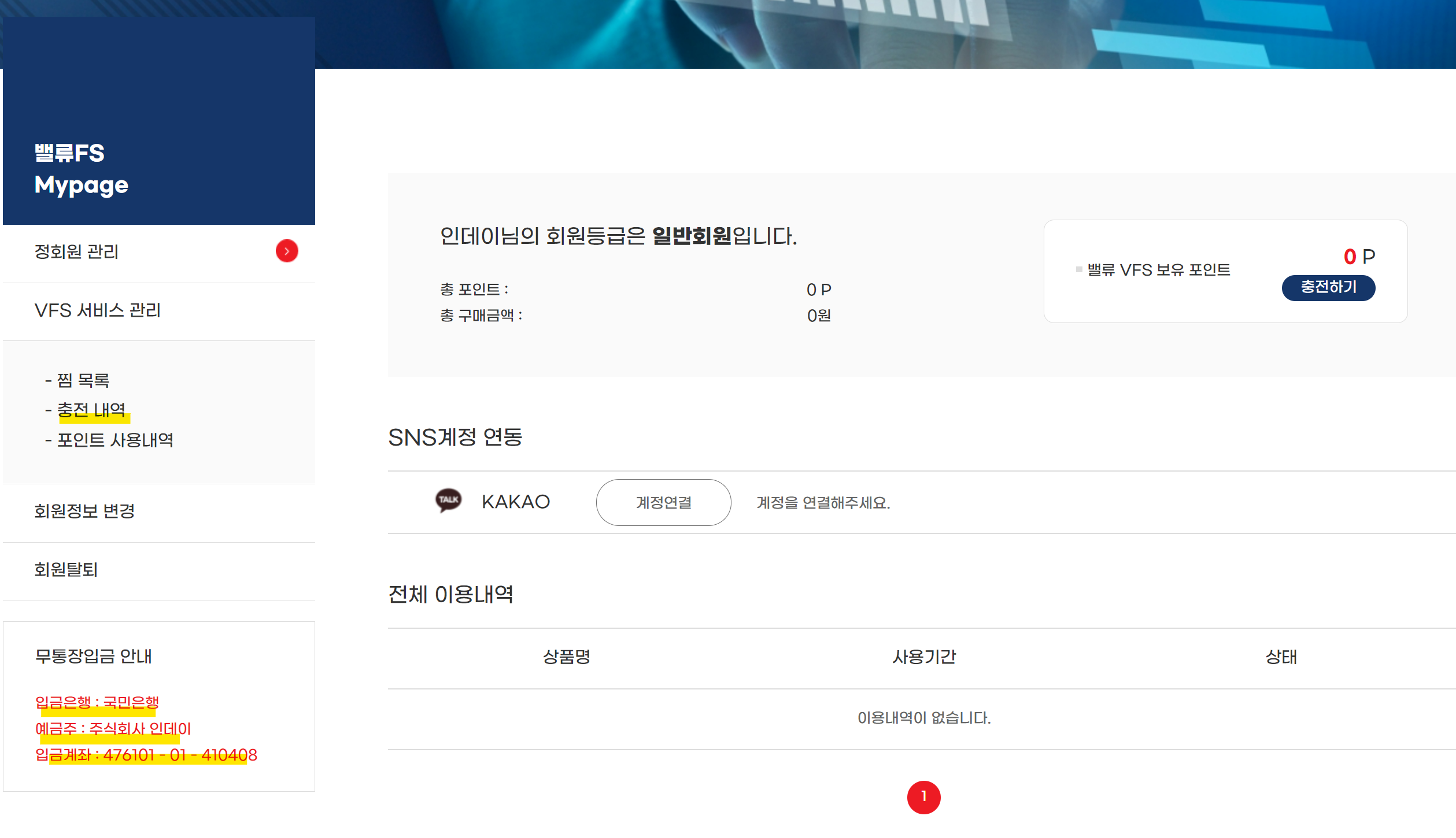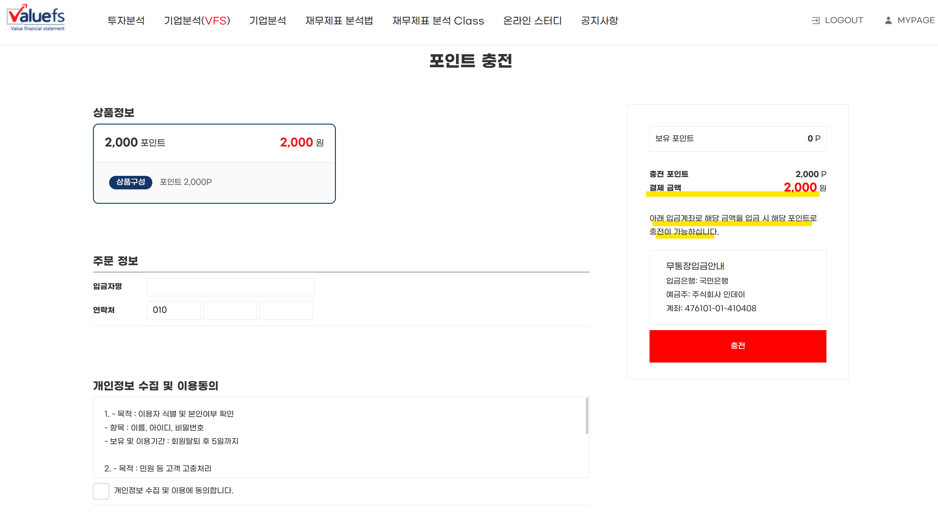 충전 금액에 해당하는 금액을 안내 드리는 계좌로 입금 후 충전 클릭. (입금 후 관리자의 확인 후 24시간 이내에 포인트로 전환 예정입니다.)